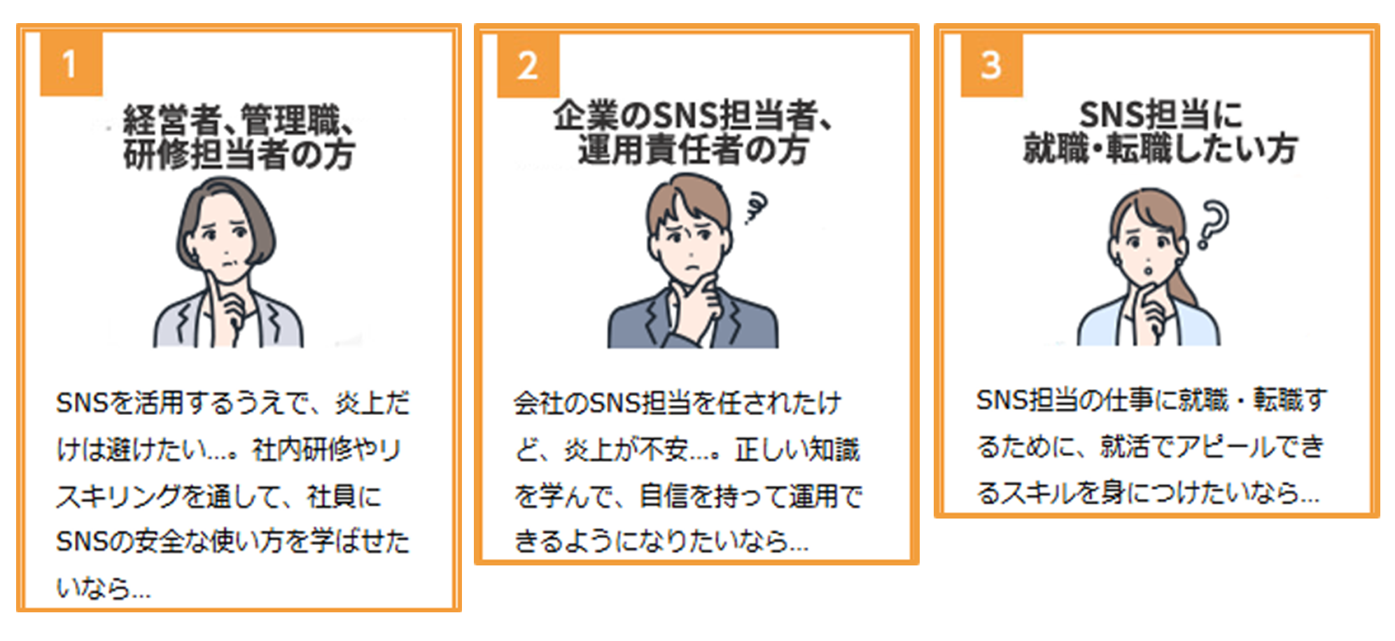SNS担当の方はもちろん、SNS時代の必須スキルとして、社員・スタッフの方も