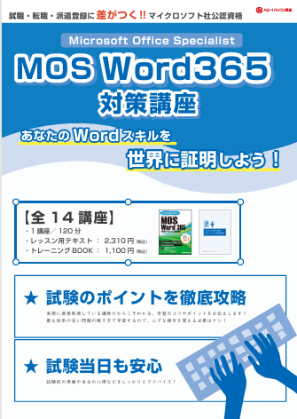 MOS資格取得を目指す方向けの MOS資格対策講座 をご用意しています。